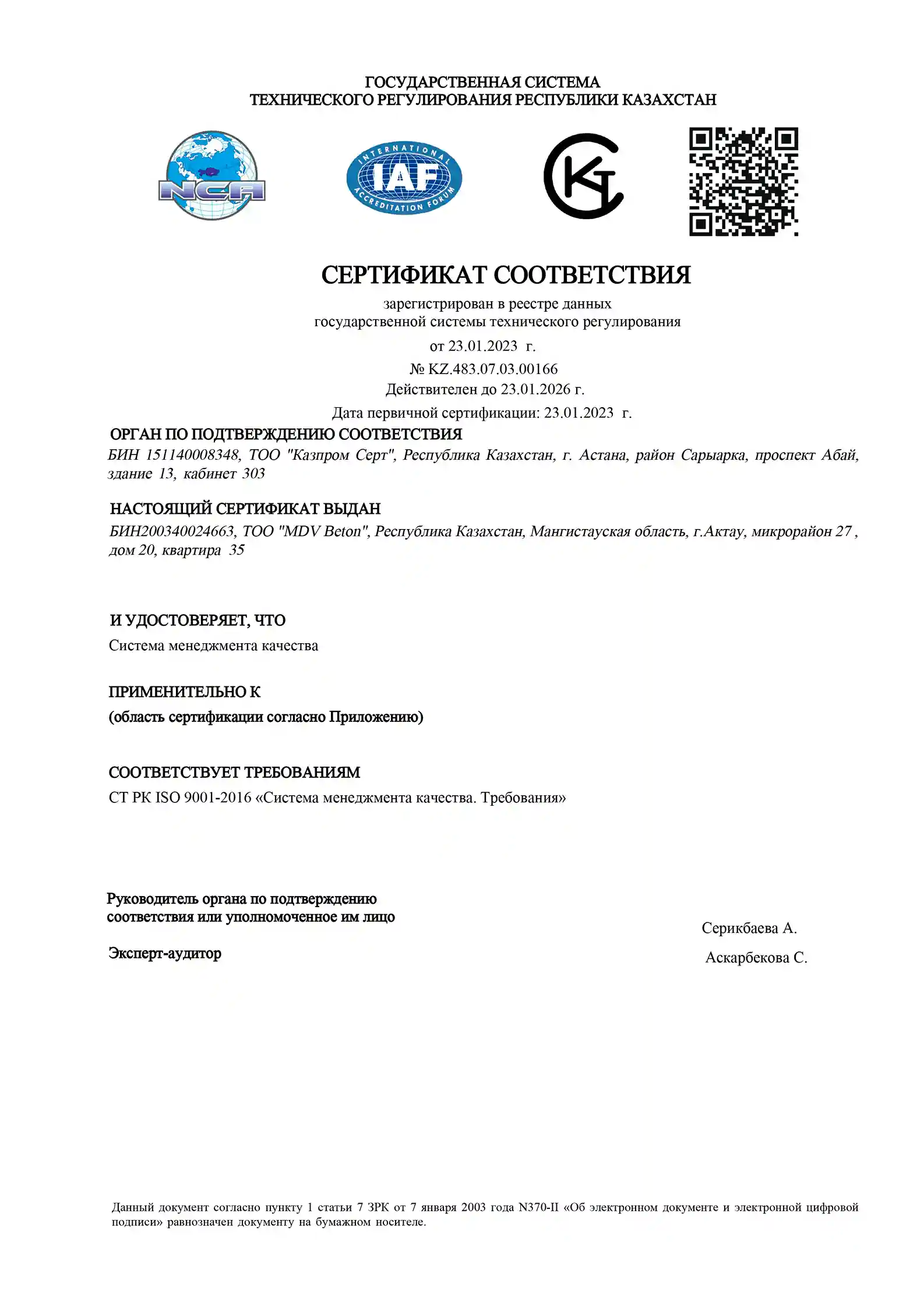 и сертификаты качества